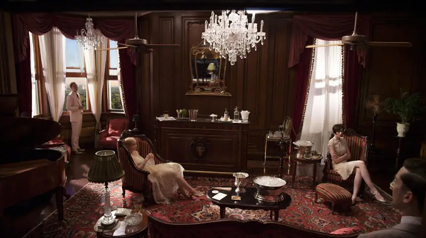 The home style in this movie is a typical American classical style. The movie recreated the social life of the American upper class in the 1920s by decorating the protagonist, Gatsby’s home as luxurious as possible. Velvet curtains, baroque crystal chandeliers, and oriental patterned carpets presented a noble and elegant classical beauty. The dark wood furniture with rough lines and the ceiling fan made of brass reflected a sense of age with unique charm, giving a full display of how Gatsby led an extravagant life after becoming a millionaire from a a penniless vagrant.