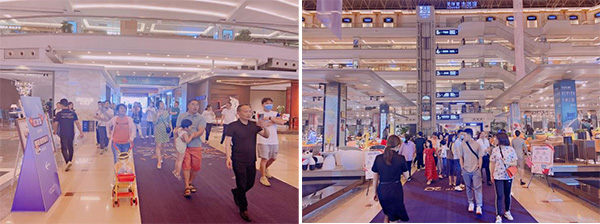 The 41-meter-high large hollow atrium behind Zones C and D are well decorated and offer an open vision. Tens of national flags hung on the ceiling are very conspicuous, making the atrium look like the UN headquarters. There are over 2,000 domestic and overseas Tier-1 furnishing brands and over 20 thematic pavilions around the spectacular atrium.
