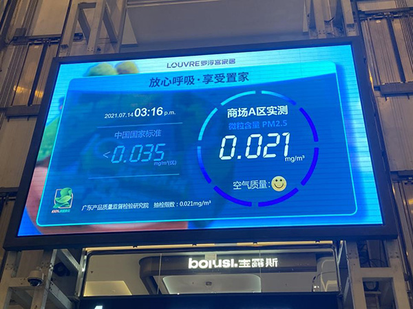 Moreover, Louvre has a world-class air freshening system, and displays PM2.5, the environmental pollution index, and other indicators on the LED screens all over the mall, showing our determination to create a green shopping environment for consumers. It is noteworthy that there is no odor throughout the mall, which is not easy for a furnishing mall.