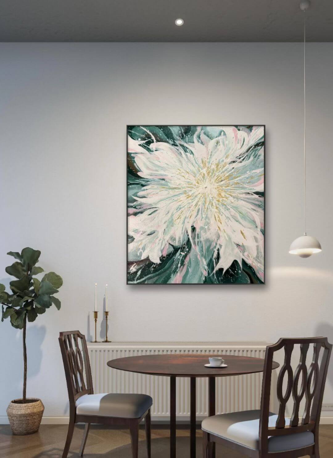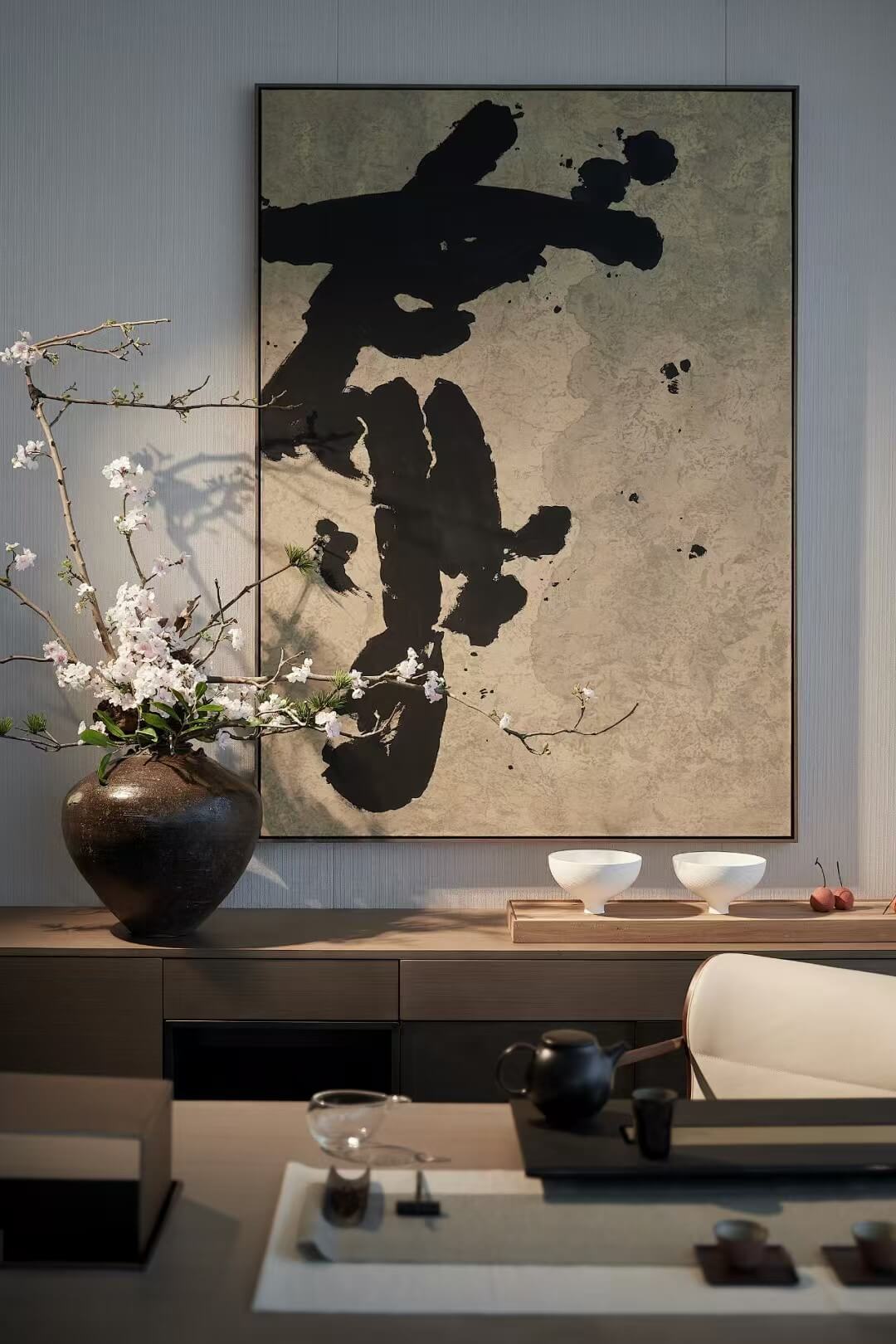 Adorn plain white walls with decorative artwork. Ink wash paintings/calligraphy, botanical prints, and florals complement natural wood tones beautifully, adding a poetic and lively touch to the space.