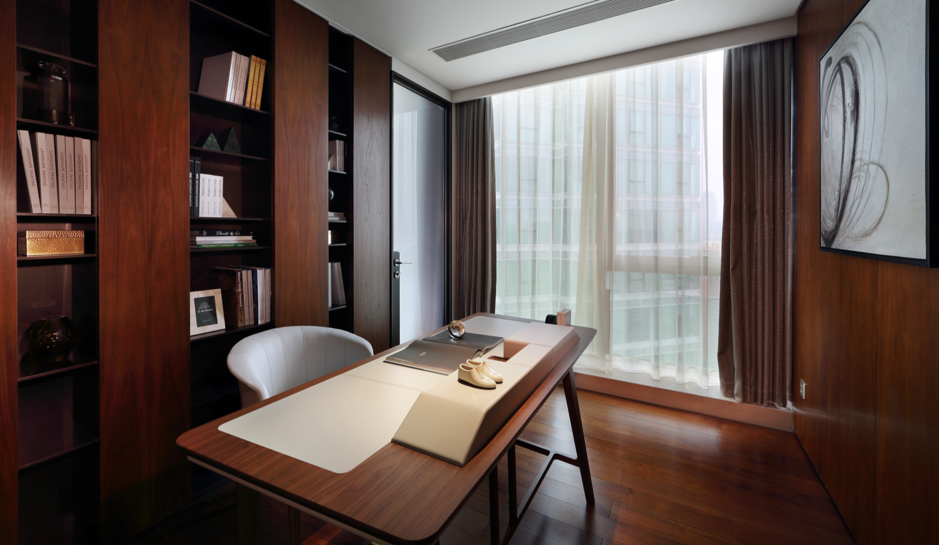 Here, every aspect of the space layout are well designed and produced to achieve a multi-layered balance, from lamp selection, lighting and contour control, the extensive use of high-quality wooden finishes and stones, to the arched transition of the furniture to visual effects of different perspectives.